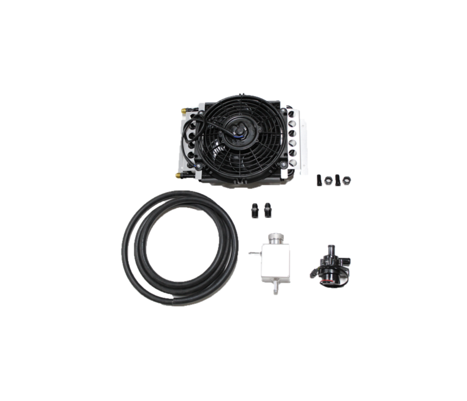 Designed for applications where ruggedness and powerful cooling requirements are essential, this kit has both a professional appearance and the highest performance possible. It utilizes -8 AN fittings and hose throughout for a guaranteed leak-free system. The radiator and fan assembly is extremely easy to mount and provides large amounts of air flow to keep your system running cool.